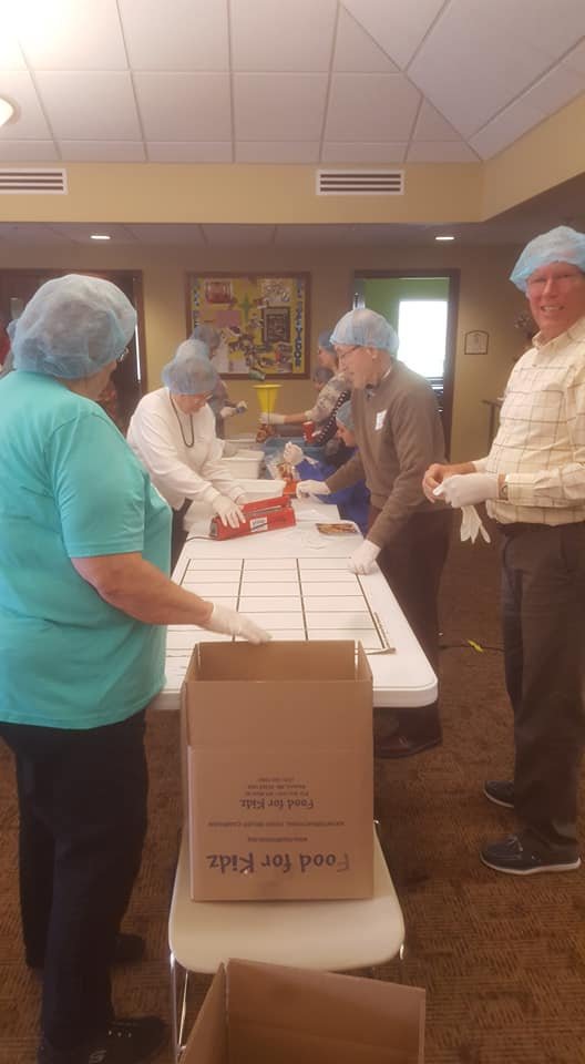 - Food Pack to help world hunger, coming together to portion and pack dried goods for those in need.