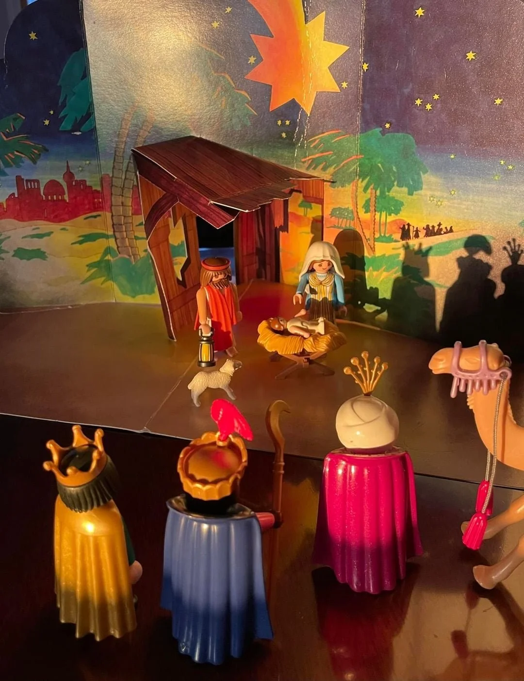 Our Wiseman and their camel find the baby Jesus not in a hospital or even an inn, but in a stable with the animals. They have so many questions…